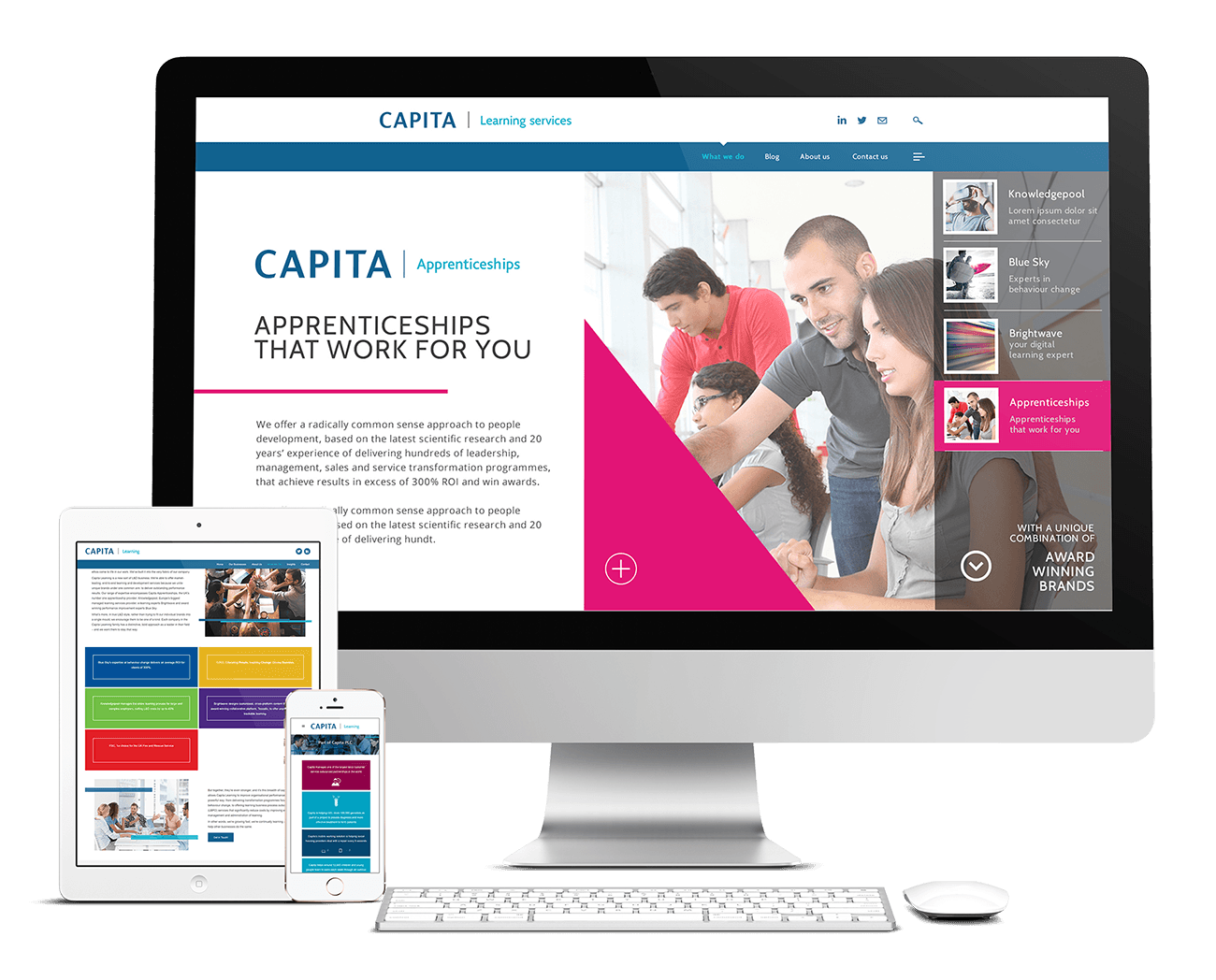 We worked with several clients under the Capita PLC umbrella, including Knowledge Pool, Capita Apprenticeships, Blue Sky, and Bright Wave. Each client had unique requirements, from website building and maintenance to SEO services. Our goal was to promote awareness of Capita PLC’s various campaigns.