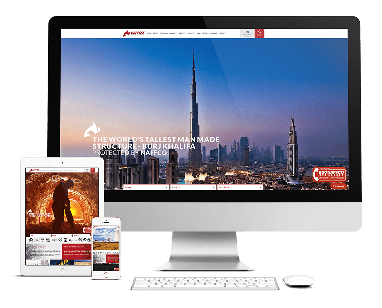 We built a mega menu with three levels for each product to address the main challenge. Our team worked closely with NAFFCO to develop a professional design representing their corporate image in the best possible light. Details of multiple prestigious projects were added to the site, giving a far better impression of the company’s size. These were all collated into a ‘Projects’ page. Our web designers also incorporated three feed systems, news and events pages, and a blog.